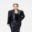 Bề mặt da mềm mịn, có độ đứng phom tốt và tạo cảm giác sang trọng khi mặc. Chất liệu giúp trang phục giữ được cấu trúc gọn gàng, phù hợp với phong cách công sở hiện đại và những dịp cần sự chỉn chu.