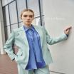 Bộ vest xanh bạc hà phối sơ mi cổ nơ màu lam là lựa chọn lý tưởng cho những cô nàng yêu thích sự phá cách và nữ tính. Sự kết hợp tinh tế giữa màu sắc pastel nhẹ nhàng và thiết kế cổ nơ mềm mại giúp bạn nổi bật mà vẫn thanh lịch trong môi trường công sở.